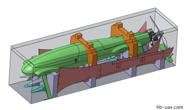 本無人機產(chǎn)品為串列翼設計,采取旋翼和固定翼結(jié)合設計,可垂直起降,固定翼模式飛行,總體包含機身、地面站、遙控器、電池、三光吊艙(紅外、可見光、激光),電池、充電器及運載收納箱等。